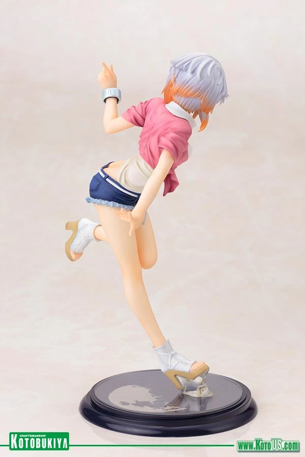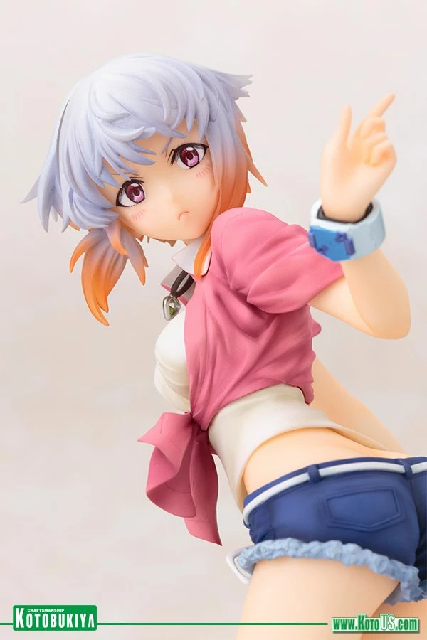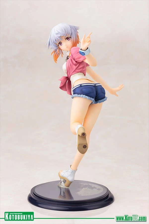 A KOTOBUKIYA Japanese import! Kotobukiya’s world-famous Ani*Statue collection is adding another unique and popular property, the currently airing anime series Aquarion Logos! The second sequel in the Aquarion series with an unrelated story, “Logos” tells the tale of a world where words have power and young heroes operate vehicles and giant robots to stop monsters. Among the pilots of the Verbalism Club is the first character brought to life as an Ani*Statue, the beautiful MAIA TSUKIGANE! The pilot of Vector-02 is frozen in time as she runs headlong into danger while looking back at you over her shoulder with a stern expression on her face. Maia wears her distinctive outfit consisting of white shoes, cutoff jean shorts, and a light pink jacket tied over a white shirt. The girl’s beauty is only accentuated by the extreme detail put into her sculpt which you can see on the seams, fringes, and creases in her clothing, her messy multi-colored hair, and her accessories like a bracelet and necklace. Maia Tsukigane stands just over 8 ½ inches tall (1/8 scale) as she races forward, balanced beautifully on a specially designed display base. Make sure you capture Maia before she runs away for good!