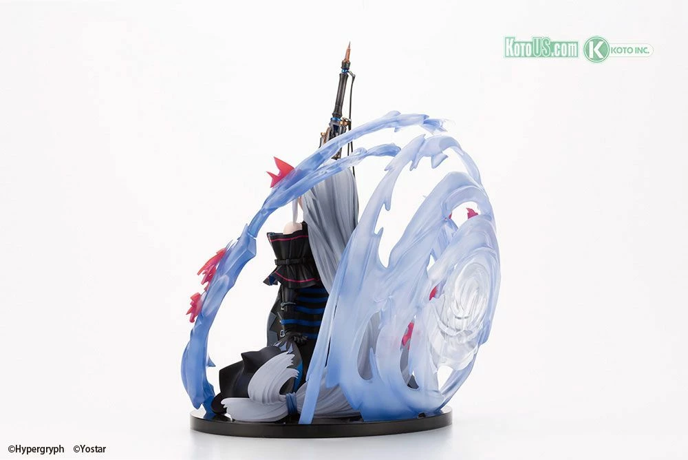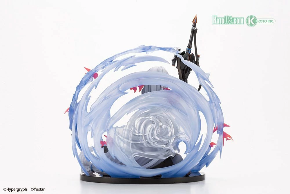 Her mysterious red eyes and beautiful skin…Skadi arrives on the scene carrying her large sword that can churn the seas. The character’s design is accurately recreated with the spiraling waves in the background also included.