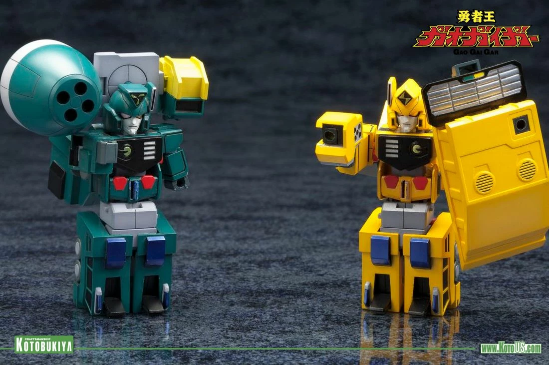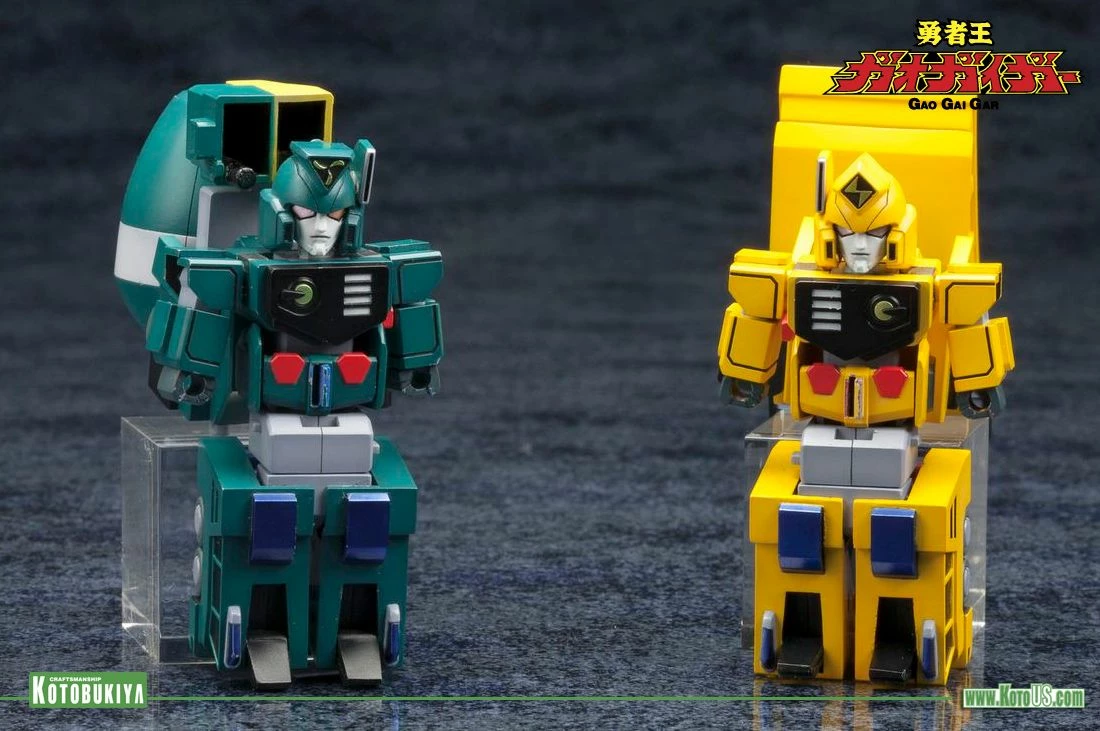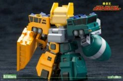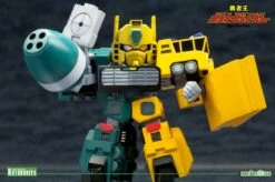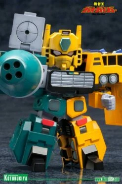 A KOTOBUKIYA Japanese import! “D-Style” is Kotobukiya’s plastic model kit series featuring various mecha rearranged into stylized miniature versions allowing you to collect your favorite robots in a high quality compact scale with solid construction and an unbeatable price. Up next in the fun series from Brave King Gao Gai Gar in the deformed style is another set of transforming and combining vehicles that make up GEKIRYUJIN! Included are the individual robots FuRyu (transforms into a blue cement mixer) and RaiRyu (yellow dump truck), which join together to form the mighty Gekiryujin, a cute robot standing nearly 4 inches. This cool new set consists of 130 pieces molded in pre-painted plastic featuring the individual color palette of each vehicle and robot. No painting is required and assembly is a snap. Whether you prefer their separate forms or joined together into the powerful Gekiryujin these model kits look great alongside the other D-Style Gao Gai Gar vehicles and robots from Kotobukiya!