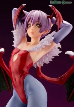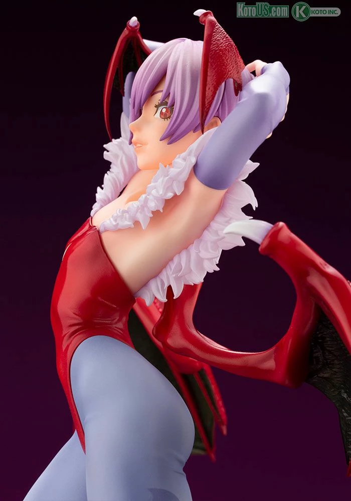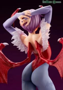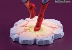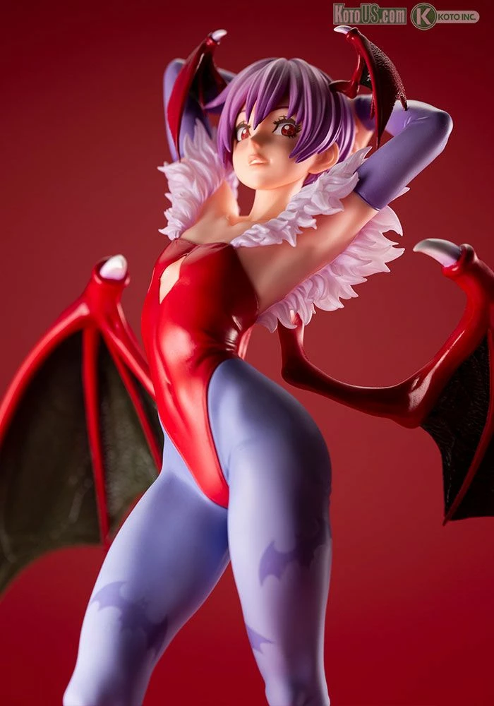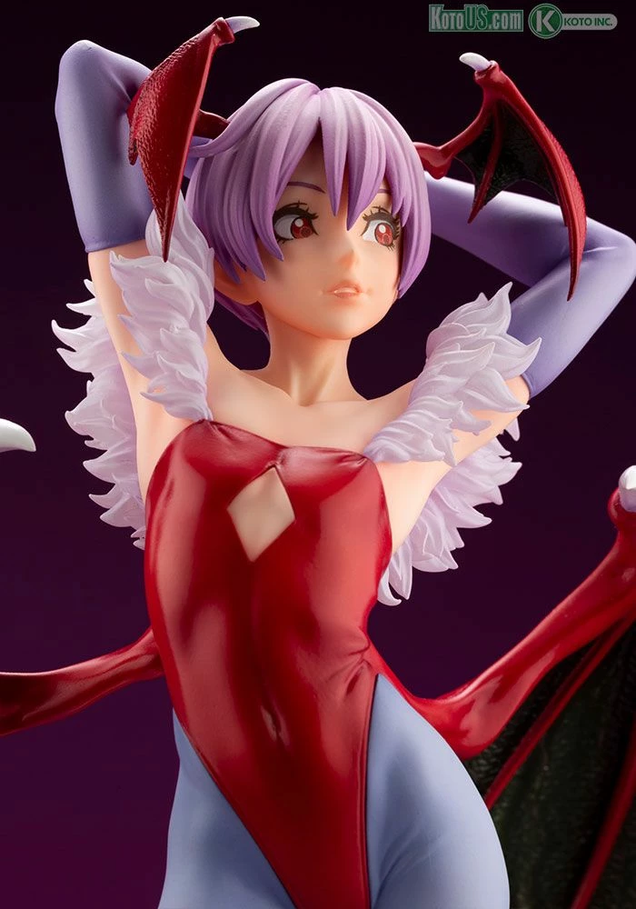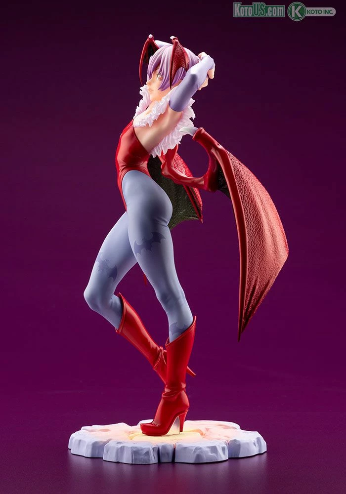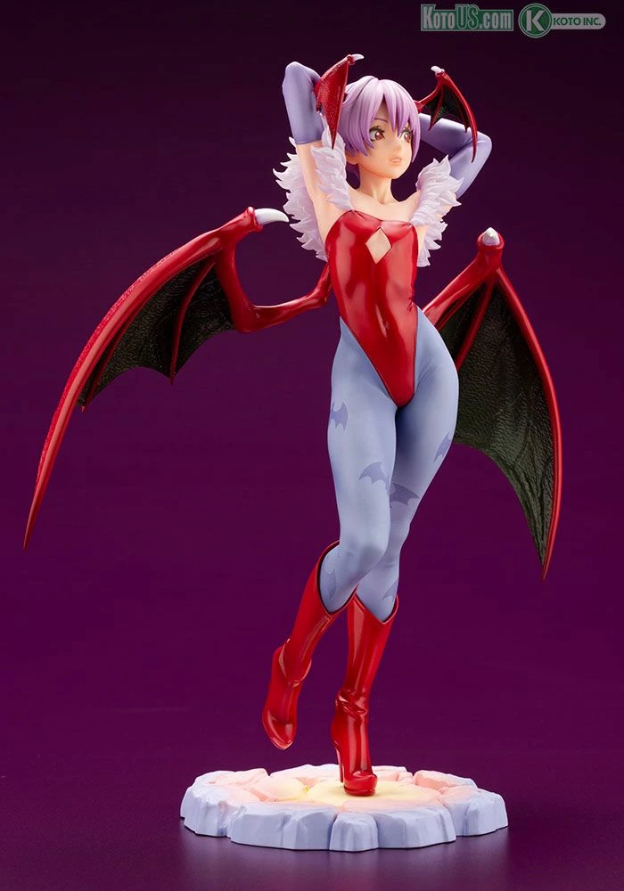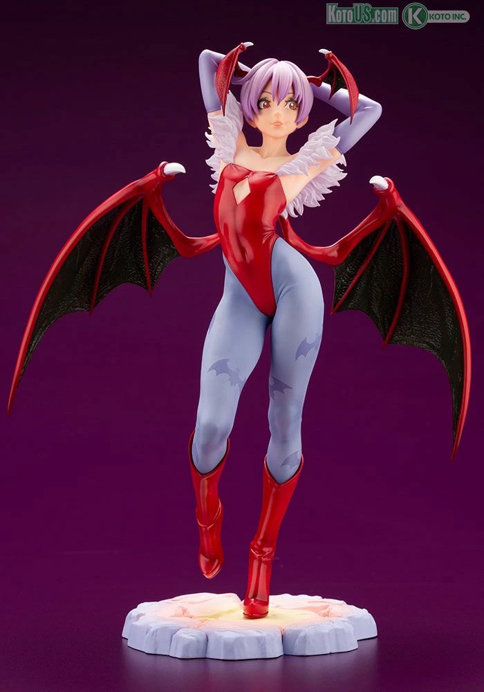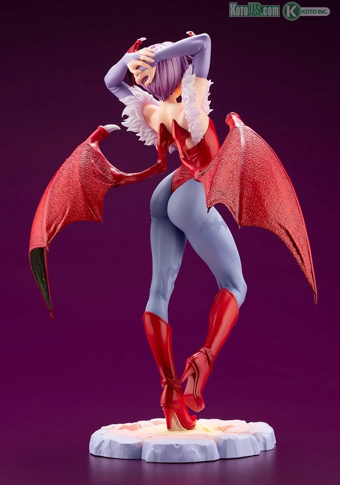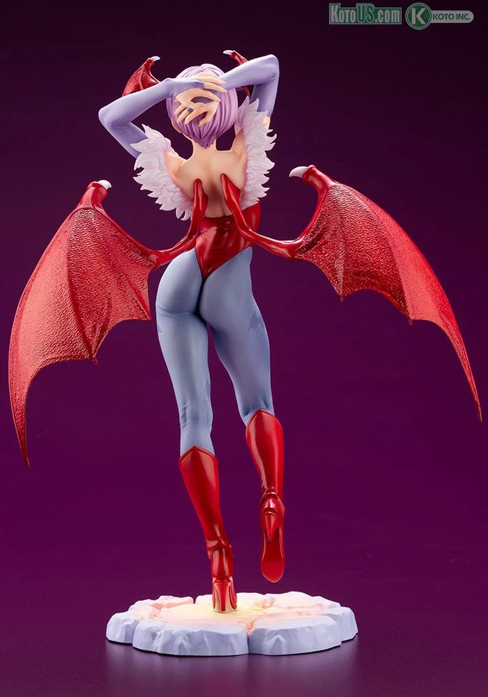 The base resembles a stage from the video games and its color is matched to that of Morrigan’s.