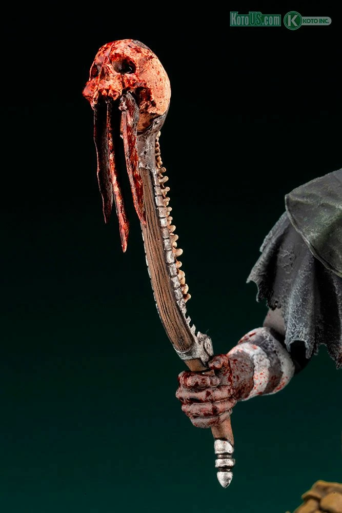 From the texture of the skin reminiscent of bark from a birch tree to the slimy texture ofblood stains, every element and texture of The Wraith is perfectly brought to life in a manner that can only be portrayed in a statue! Even his boss, now a weapon in his hand, is recreated with the finest details.