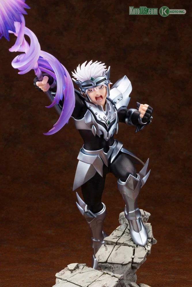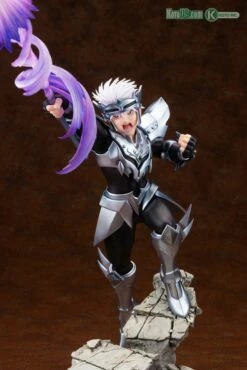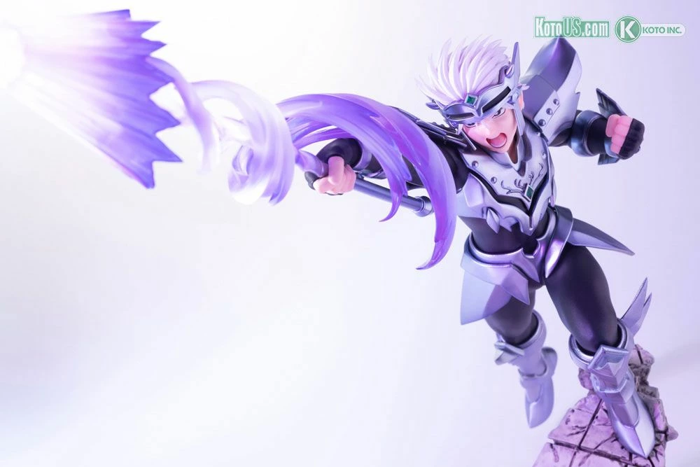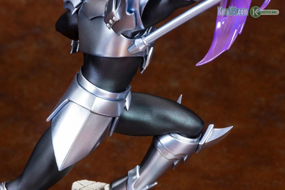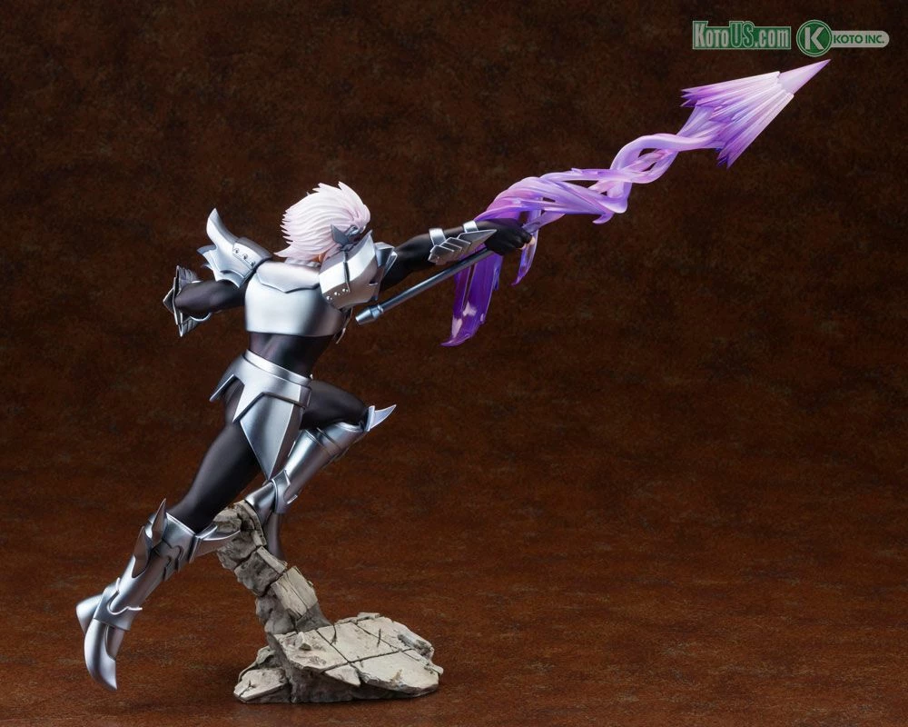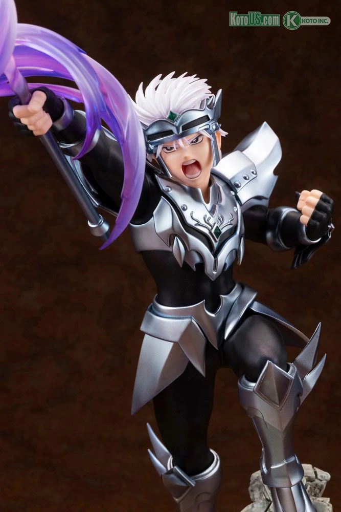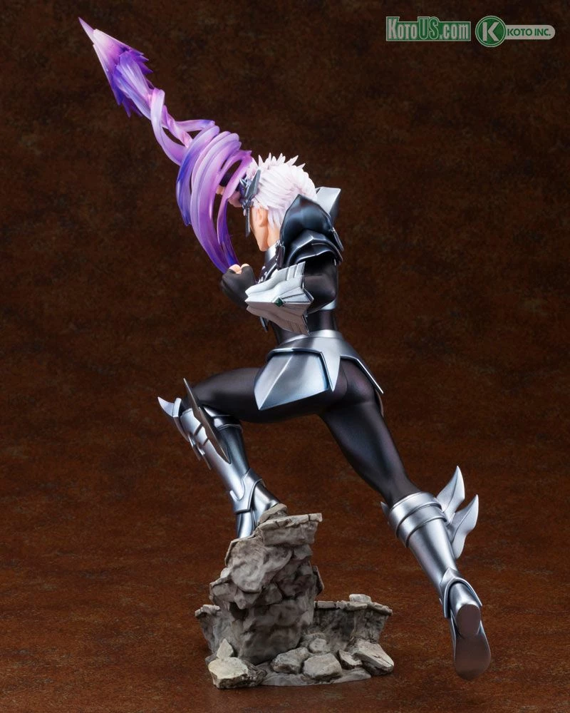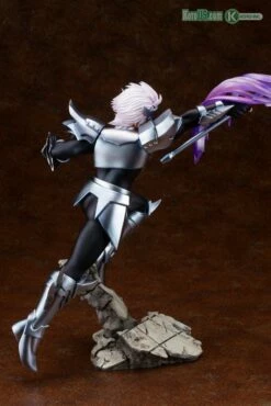 In addition to his glittering silver armor, his under-armor paint makes green and purple reflections, allowing for a different shine to be seen at every angle in the high-quality finish of this figure.