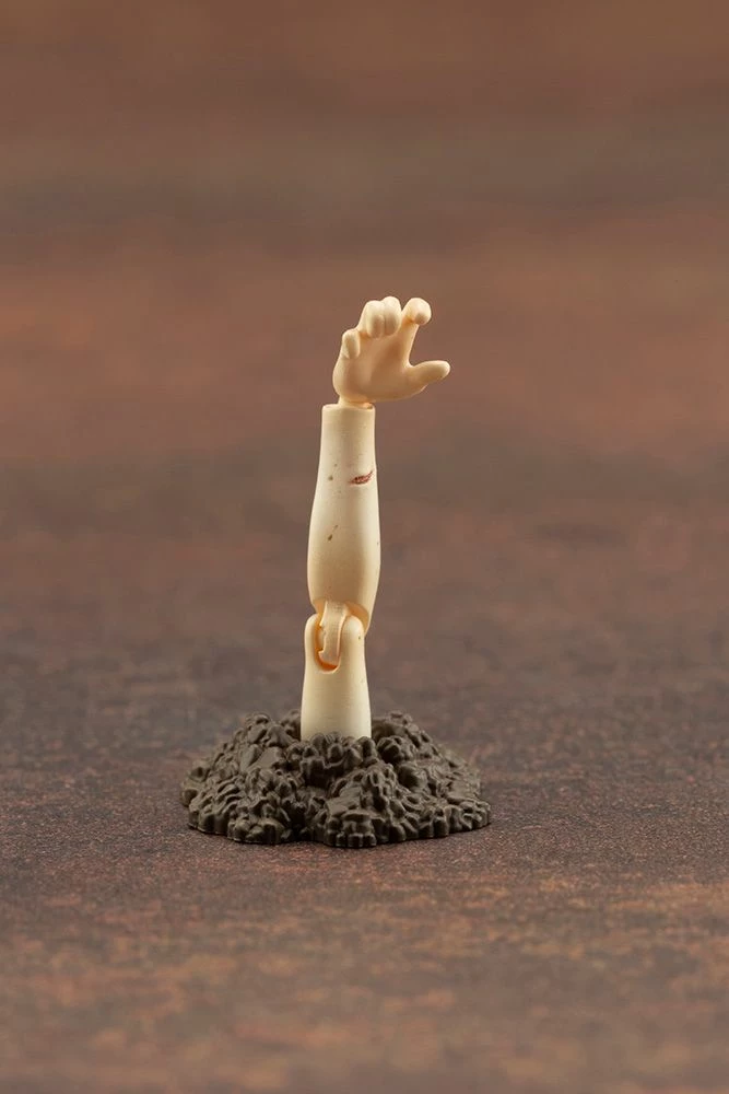 WRETCHED GIRL and FALLEN QUEEN both come with a dirt mound effect part, which can be connected with an arm unit removed from the main body to recreate a scene where the zombie thrusts their arm in the air to crawl out of the ground. The dirt mound effect part is also compatible with the arms of ZOMBINOID AGONY and BITER.