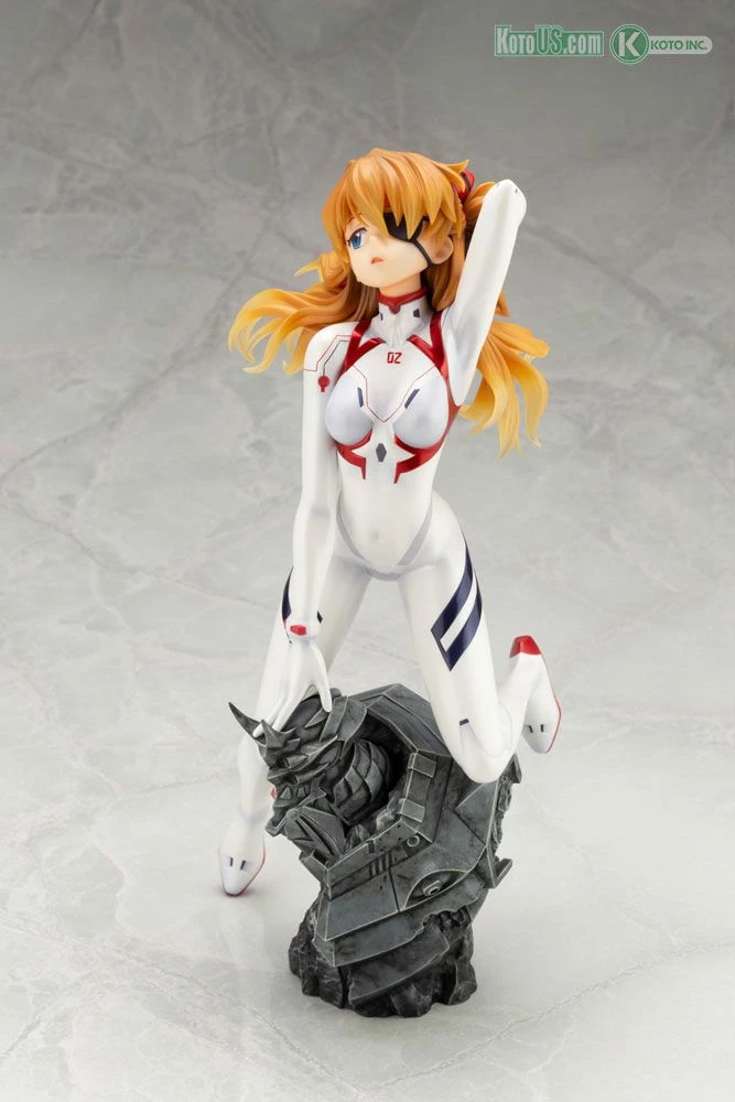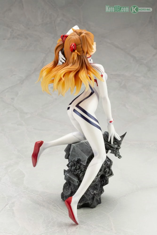 As seen in EVANGELION:3.0+1.0 THRICE UPON A TIME, this 1/6 scale statue of Asuka is depicted with the new white plugsuit she dons before the final battle. With a handful of accents featuring Asuka’s trademark red, this all-white plug suit shows a new side of the character.