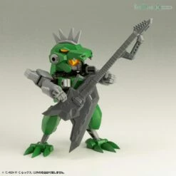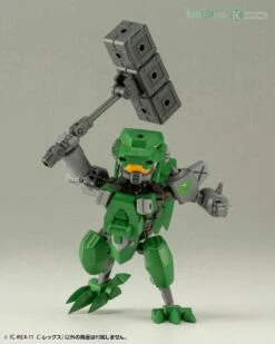 ■ The model’s main color scheme is green and gray, with a gunmetal core and clear orange eyes. The kit also includes sticker decals to recreate the design from the illustration.