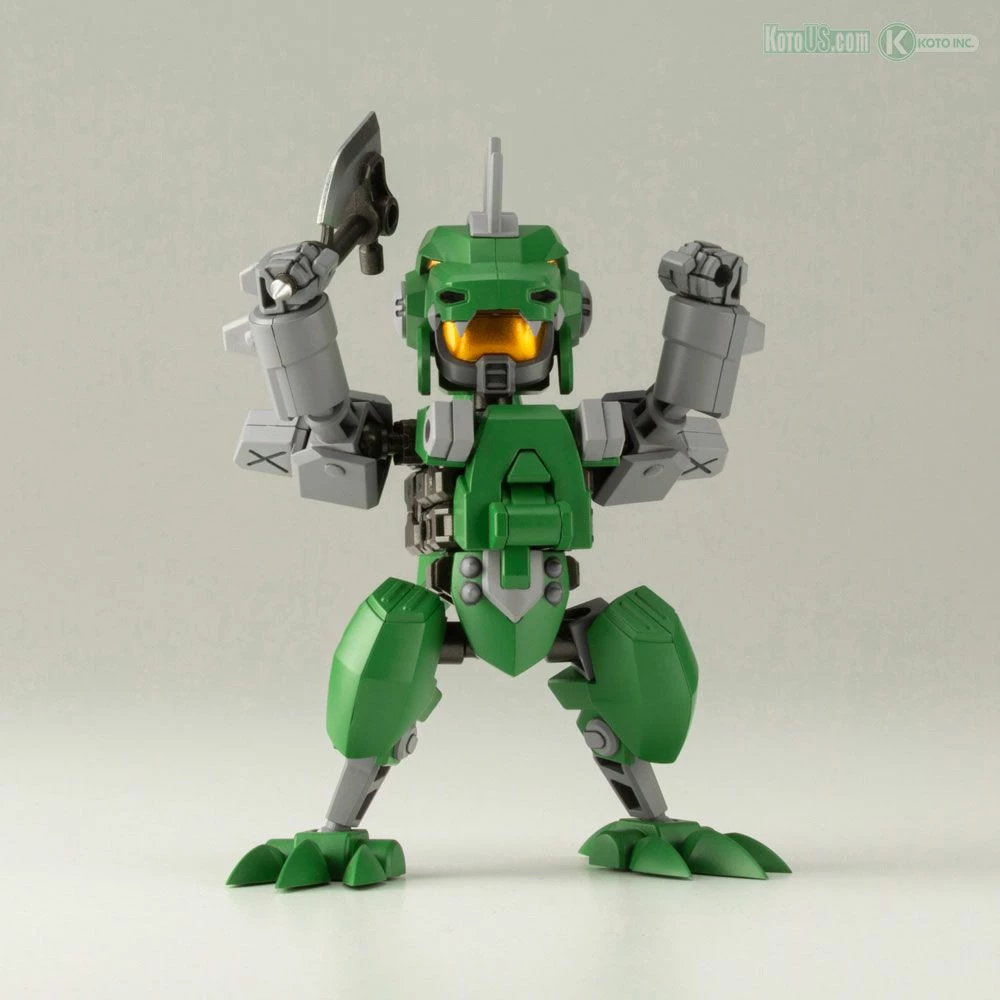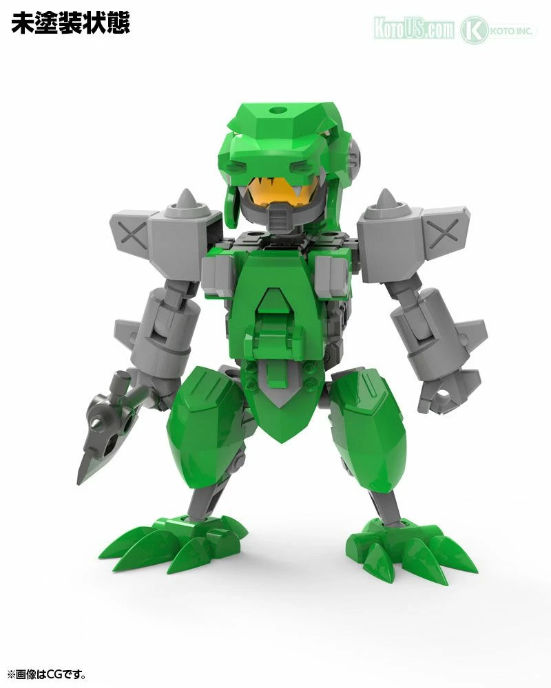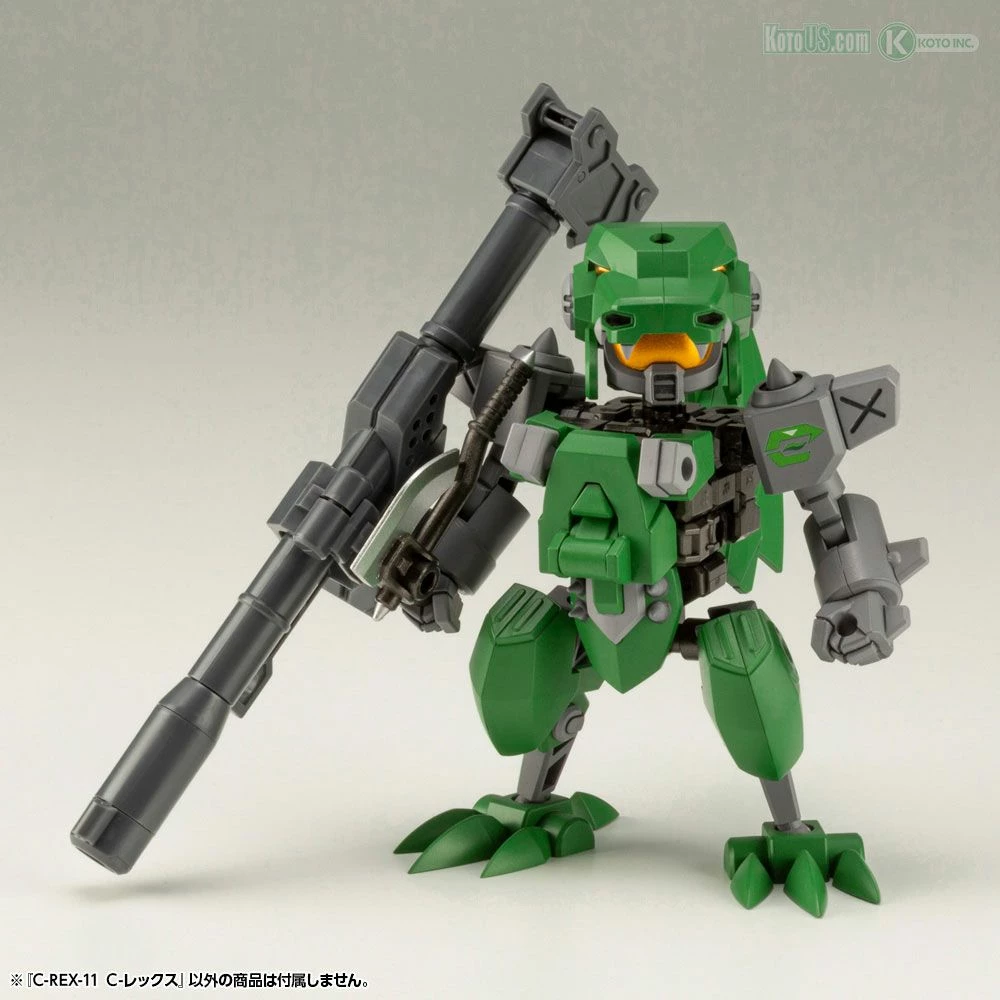 The latest addition to this series of plastic model kits featuring cool and cute chibi robots by mechanical designer Kunio Okawara has arrived! The instructions for this series include a comic drawn by Kōichi Tokita. C-REX, the lively, cheerful minions of the Evobeast army, transforms from a chibi robot to a Tyrannosaurus Rex with no interchangeable parts required.