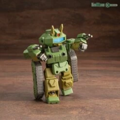 ■ The model’s main color scheme is green and khaki, with a gunmetal core, a clear blue visor, and a clear red main camera. The kit also includes sticker decals to recreate the design from the illustration.