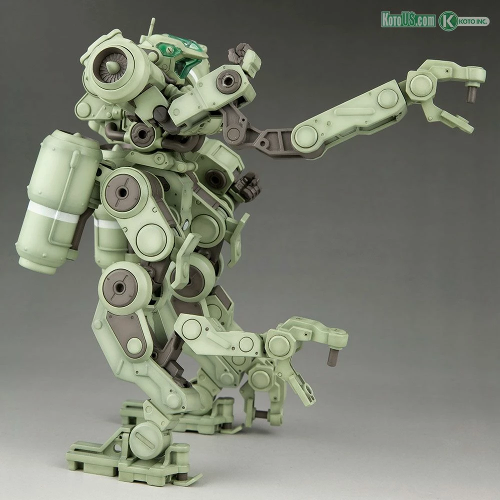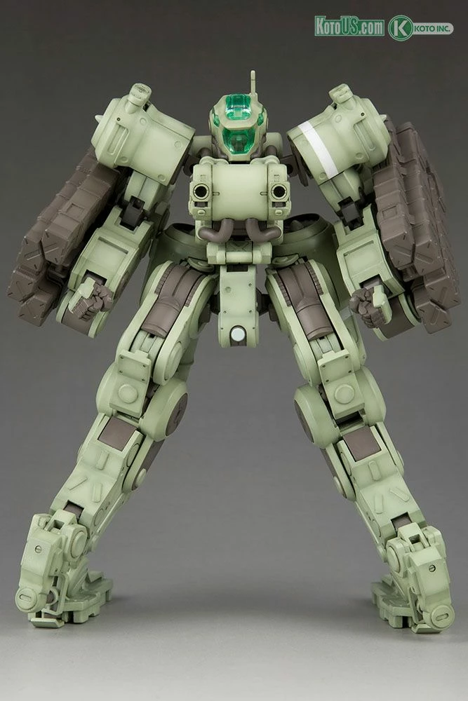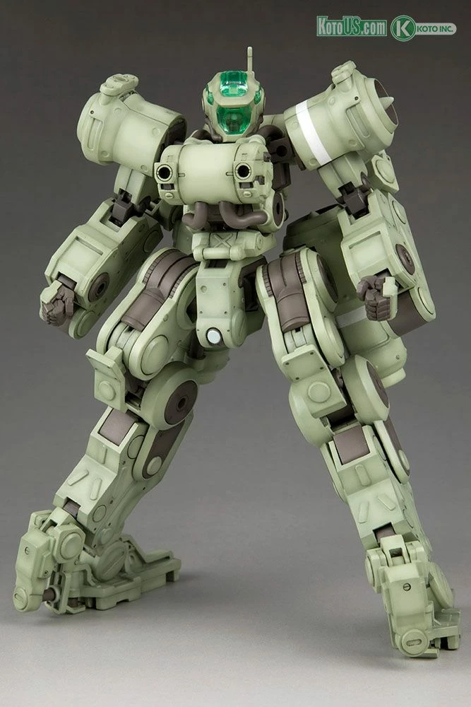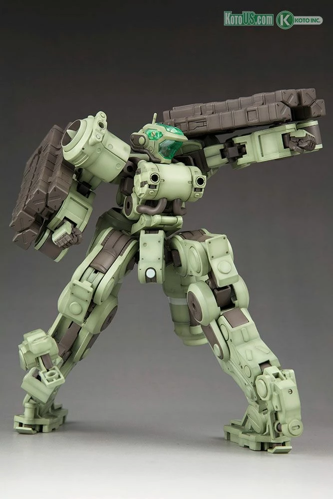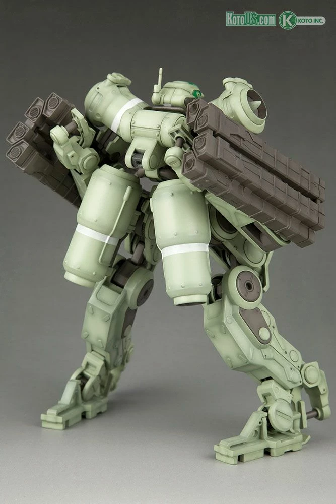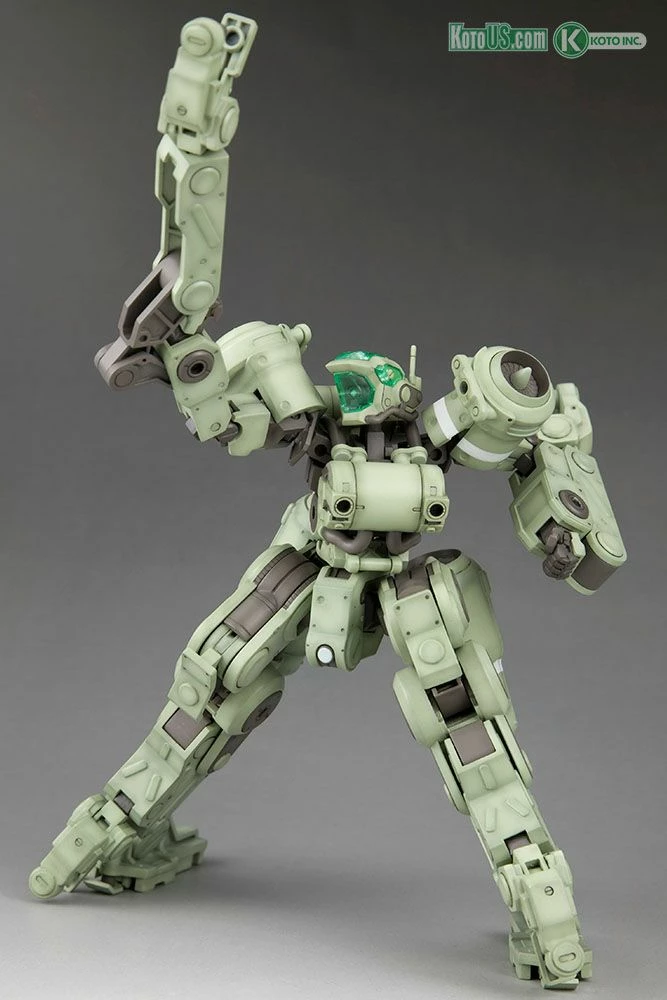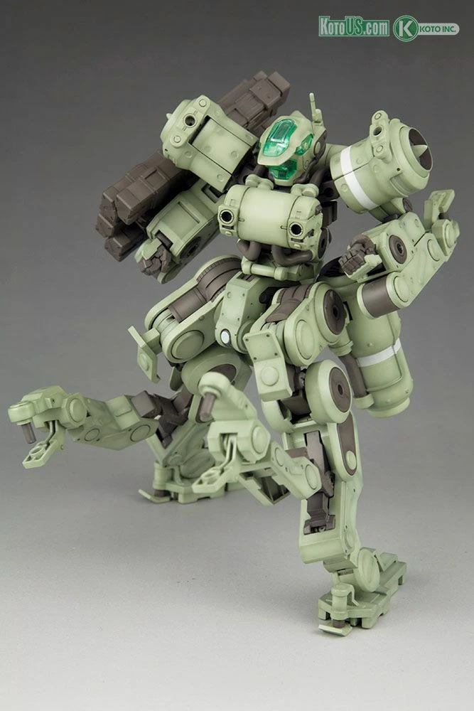 The model’s head is covered with a large visor and the shoulder armor is outfitted with propellers. The unique rough silhouette is designed to withstand changes in water pressure, and is accented by a unique “backpack.” Greifen is a truly unique Frame Arms model with features designed for underwater combat and exploration.