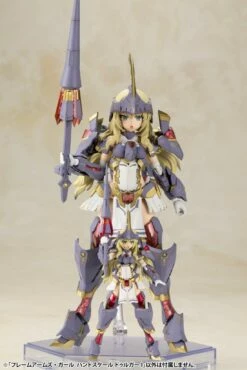 Based on E-ji Komatsu’s stylization of FRAME ARMS DURGA I designed by ToMo into an original female character, this Frame Arms Girl is faithfully recreated in a new miniature scale that can fit in the palm of your hand!