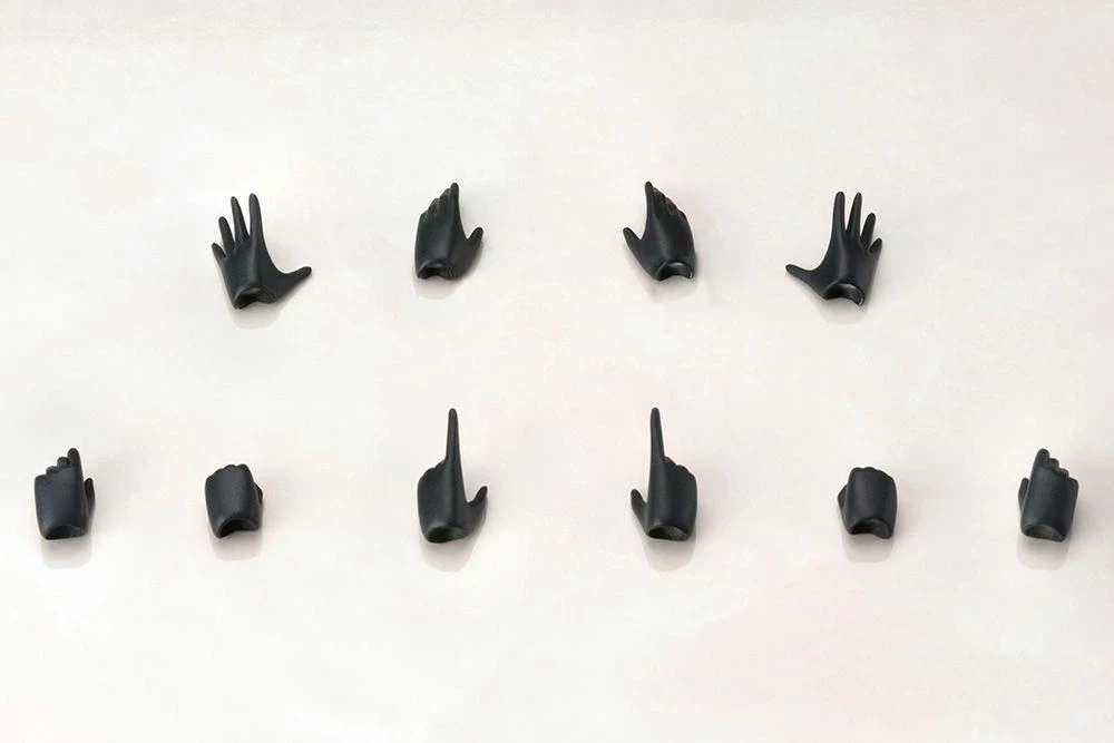 ・Includes five sets of PVC hand parts. The hand parts, including the joints, are compatible with the other hand parts within the Frame Arms Girl series.