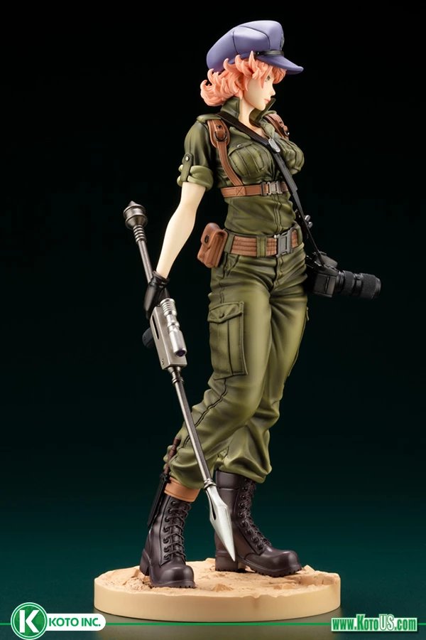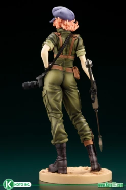 This statue reimagines the olive colored uniform from the original action figure fans have come to love. Despite the simple design of the uniform, the details in the sculpt and painting of the clothing down to the small accessories like the camera brings this character to life.Â