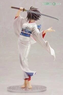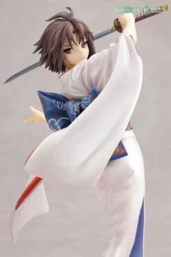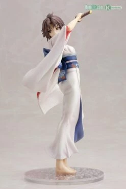 The girl with the Mystic Eyes of Death Perceptionis frozen in a sweeping gesture as she whips her deadly katana at an opponent, her body twisting around with the weapon held up near her head. Shiki’s beautiful white kimono with detailed decoration flows gracefully around her as she spins, its intricate sculpt appearing just like real clothing and imbuing the presentation with a powerful element of motion. The paranormal investigator looks serene as she goes for the kill, her lips barely open and her eyes on her soon to be dispatched opponent.