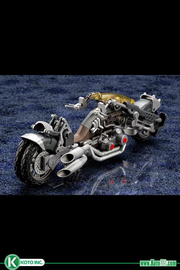 This large‐scale vehicle was first seen being used by the mysterious Governor Zoanthropus Lowe, and became known as “Bandit Wheel” due to the Governor’s merciless plundering of HEXA G‐R.A.M units from both sides of the fight. The HEXA G‐R.A.M storage seen at the core of the model constantly emits red light that fuels an external combustion engine, giving Bandit Wheel an immeasurable source of ferocious power. It is assumed that Zoanthropus Lowe throws stolen HEXA G‐R.A.M units into the storage unit to continuously increase the power of the vehicle.