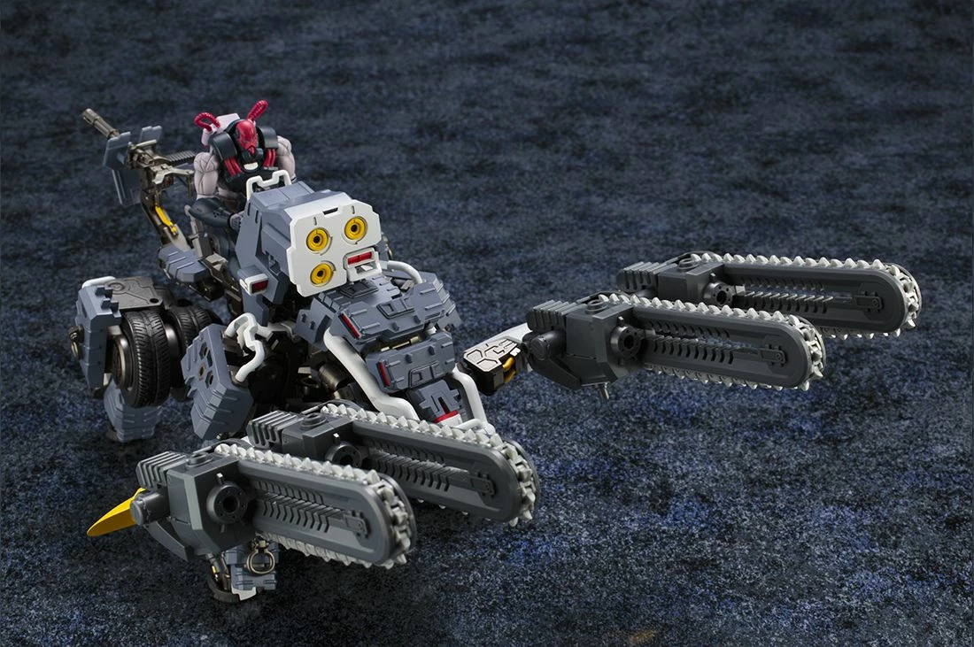 Demolition Brute is a combat Hexa‐Gear designed and developed by the Valiant Force. The Hexa‐Gear comes with attachments similar to those of a Combat engineer Vehicle (CEV) that can be attached or removed depending on the needs of its mission. A variety of machinery can be attached to the front unit, and the Hexa‐Gear was specially designed to prioritize power and torque over speed. On the battlefield, Demolition Brute excels in close combat, and its heavy armor and powerful weaponry make it ideal for destroying enemy targets. Similar to Hexa‐Gear created by Earth Cline, Demolition Brute can activate Zortex Mode, allowing it to harness the beast‐like power required to promptly and violently take down its target object.