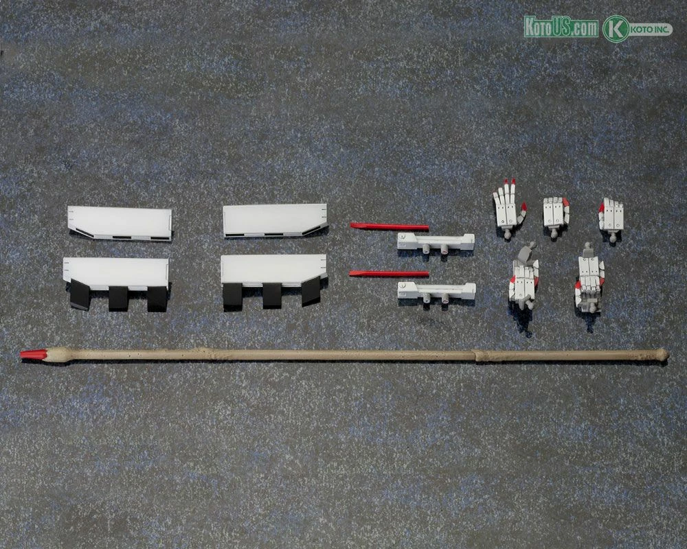 The Garde’s main weapon, the Kabizashi spear, is also included. The arm-mounted Artificial Retractable Kabizashi can be extended and also swapped out. The arm-mounted cutter can also be recreated by exchanging parts.