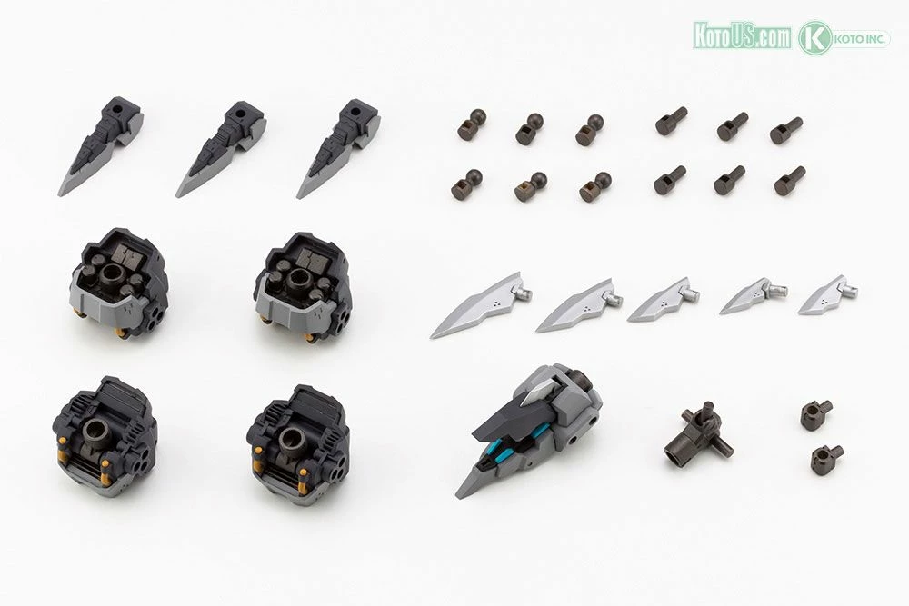The parts have a mechanical yet organic silhouette, giving them a unique design that makes them easy to use not only withFrame Arms, but with Third Generation Hexa Gear models as well.