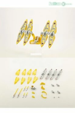 The parts can be assembled in a variety of different combinations such as the beautiful “wing mode” with a sharp silhouette, or “defense mode” as a body-length shield, and can be used to create unique customizations with other kits.