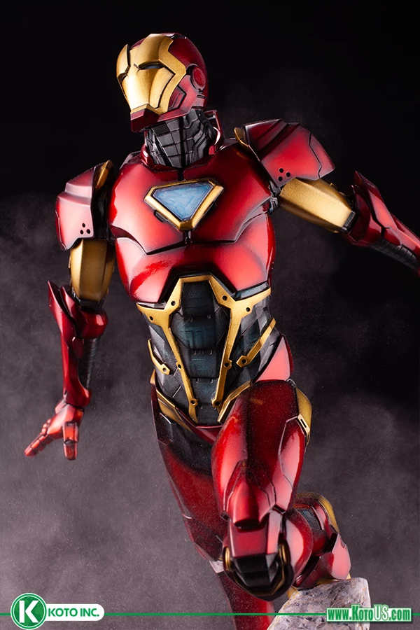 Based on the Fresh Start series’ Tony Stark: Iron Man #1, Iron Man’s suit is painted with a new process that gives it a deep and highly refined appearance. In addition to the standard base color and coating, each individual panel is outlined with dark shading. Combined with the glossy coating that catches the light beautifully, the contrast of the shading makes each piece of the armor pop and gives the statue a profound sense of depth. The sculpting of the Arc Reactor on the chest and the translucent panel on his abdomen show off the suit’s inner workings, adding another unique layer of beauty and detail to this one-of-a-kind piece. Iron Man’s dynamic posing can be interpreted differently depending on the angle from which it is viewed. Whether he is flying through the sky at top speed or launching himself off a rocky outcropping to carry out heroic feats alongside his fellow Avengers, this stunning rendition of Tony Stark is sure to make its mark on your collection!