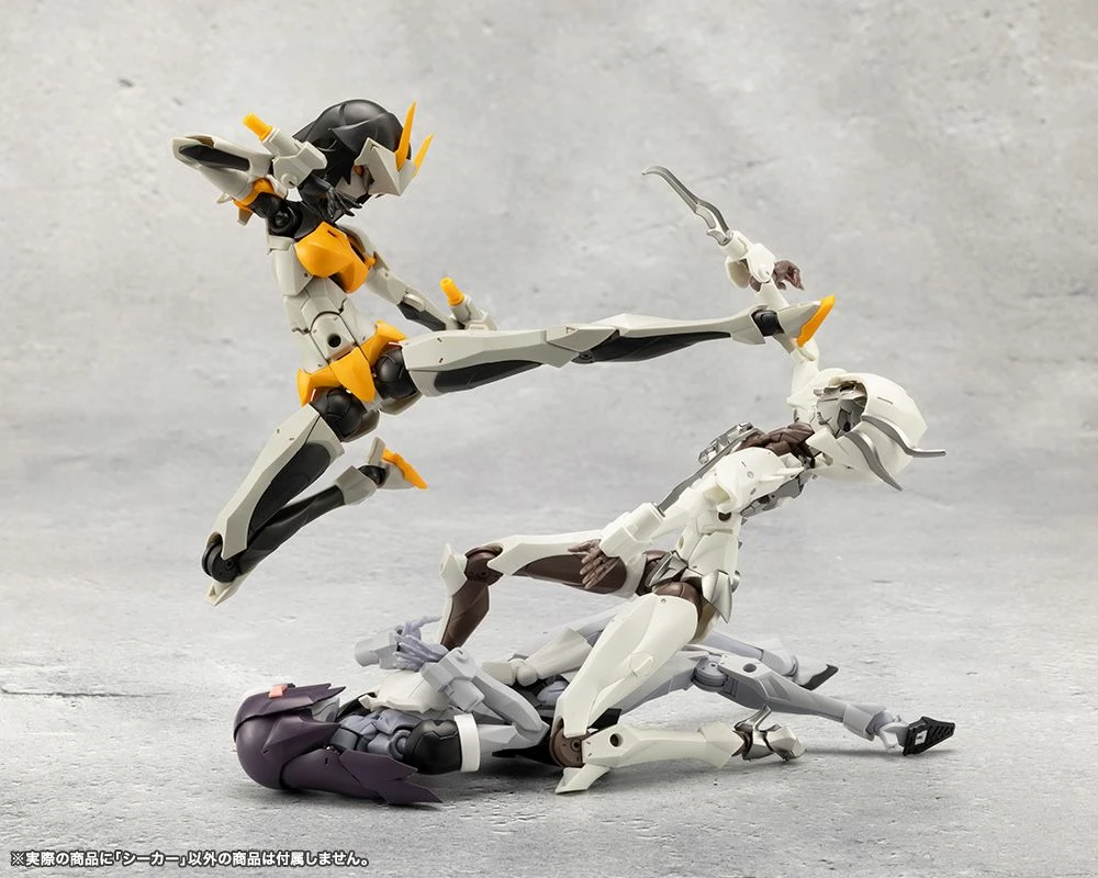 “Casting an ominous impression with its off-white color reminiscent of bones and the artificial gleam of silver, the villainous Seeker is the fourth character to join the Megalomaria Unlimited Universe series.