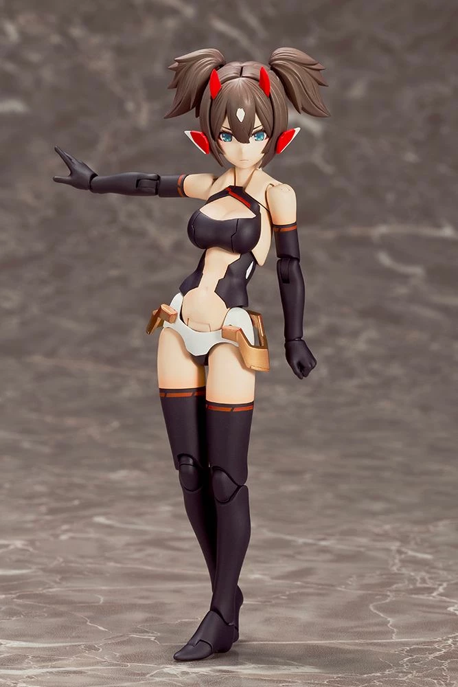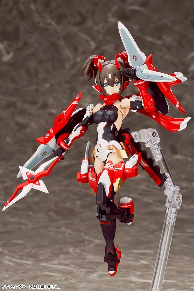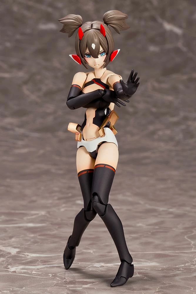 “Megami Device is a plastic model kit series where users can enjoy equipping weapons and armor to articulated bishoujo-style beauties. The “machinika” body designed by Masaki Apsy allows users to create more dynamic and beautiful poses with this model.