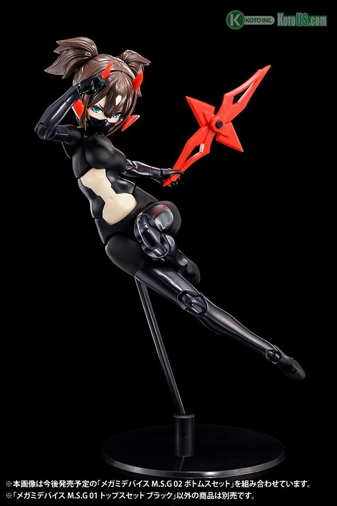 “Megami Device” is a plastic model kit series combining Bishoujo-style beauties and heavy-duty weapons and armor. Each characterhas a main body, or “machinika,” designed by Masaki Apsy along with a huge array of interchangeable parts to outfit her as you like!Now a brand new support series for Megami Device continues with Megami Device M.S.G 01 TOPS SET!