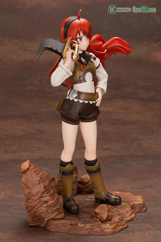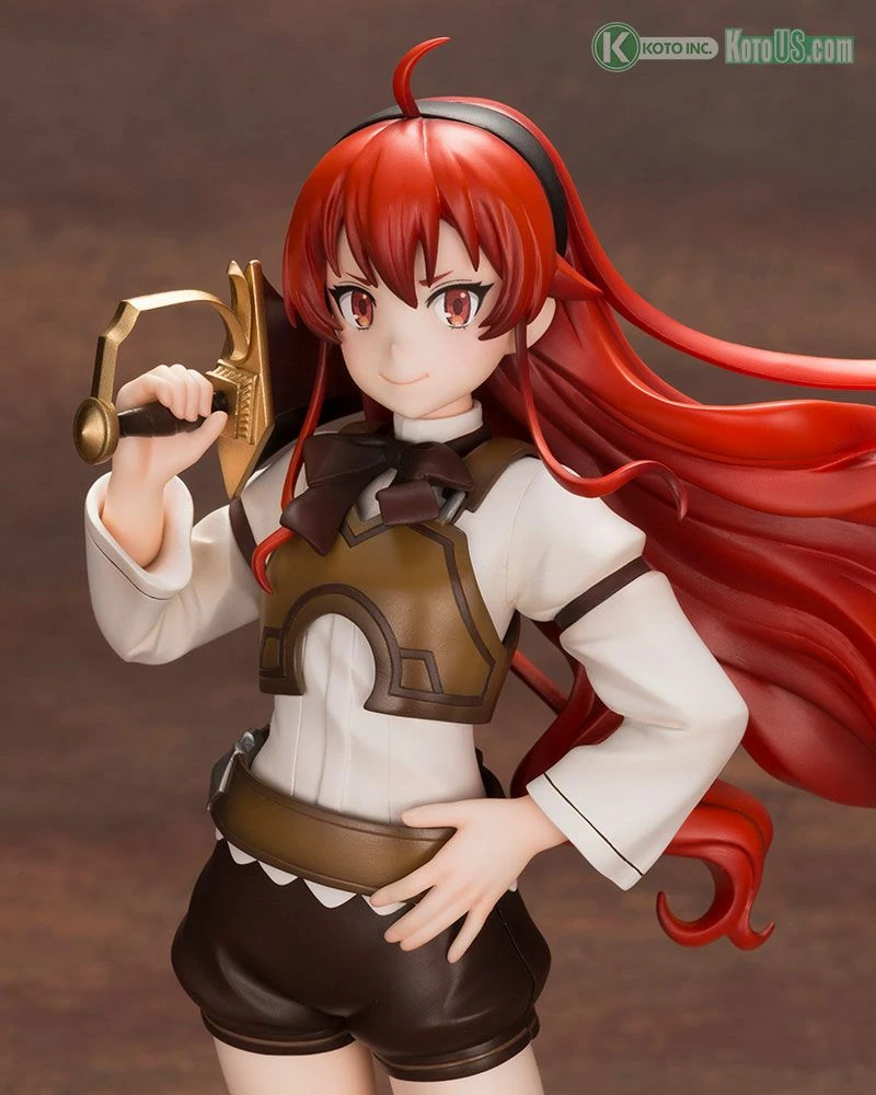 Eris is depicted having just finished a job on the Demon Continent after the teleportation incident. As a user of the Sword God Style, Eris’s rugged yet imposing sword is also by her side.