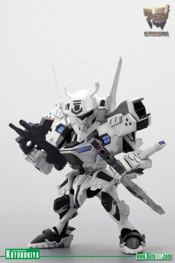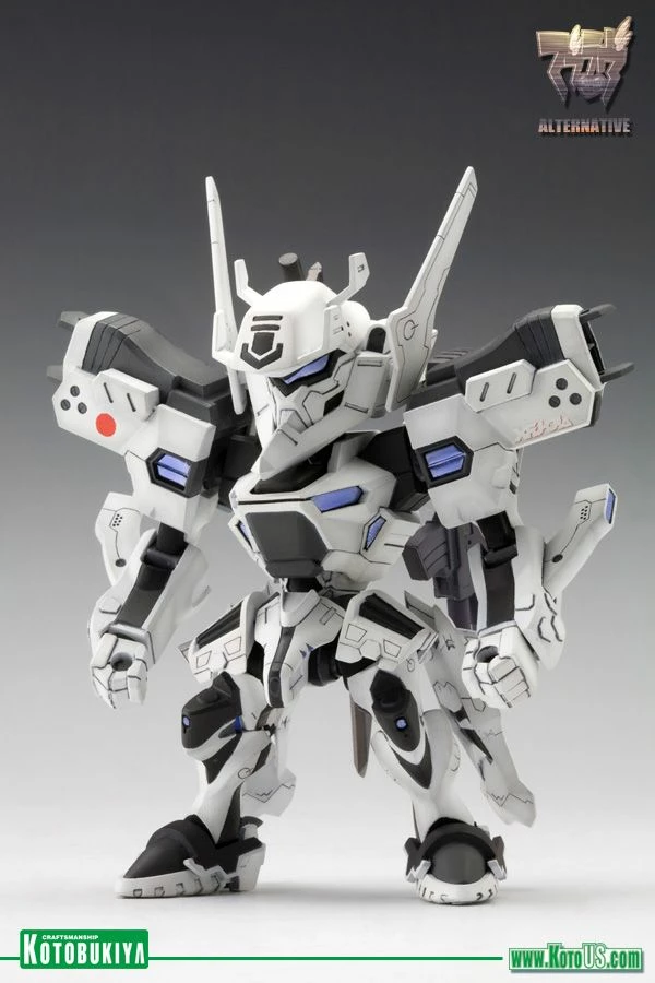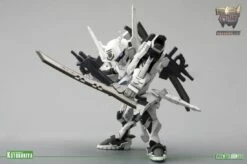 Previously released as a Deluxe Plastic Model Kit, the Ensign’s aerodynamic fighting unit is now shrunk down… and it couldn’t be cooler! The super-deformed style model kit is made up of 120 pre-colored parts (in a striking black and white color scheme) with easy snap-fit assembly so you don’t need glue or paint! Yuya’s Shiranui comes equipped with an arsenal of weapons and accessories including two Zhaodong close combat, two daggers, assault guns, and special mounts for all of those. Standing 4 inches tall, the Total Eclipse robot is highly poseable with multiple points of articulation and looks great in jumping and combat poses with Kotobukiya’s Flying Base (sold separately). Display Yuya’s Shiranui on its own or alongside other Muv-Luv D-Style model kits!