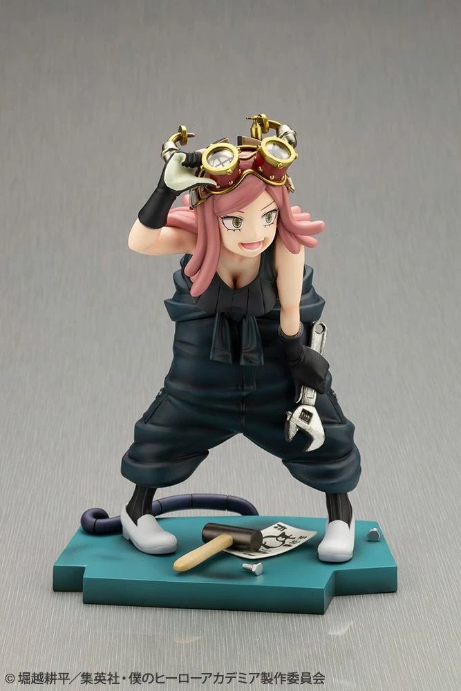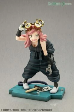 The number one inventor at U.A. High School, who is constantly creating new inventions (her “”babies””), has been brought to life. True to her image, she is recreated gripping a wrench in her left hand, with screws and other tools and items scattered around her on the base to resemble the floor of the Development Studio. With this detailed finish, fans are able to catch a glimpse of this inventor in action as she is absorbed in her everyday work of developing her babies.