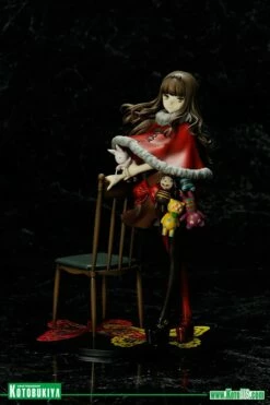 A KOTOBUKIYA Japanese import!Magic has run amuck in the modern world in the light novel turnedmanga and anime series Occultic;Nine by the creator of Steins;Gate. And now one of the unique individuals connected by the occult website “Choujou Kagaku Kirikiri Basara” is coming to life in an exquisite Ani*Statue from Kotobukiya: ARIA KURENAINO! A black magic user with a tragic background, Aria stands in a cute pose with her legs crossed as she holds a special stuffed friend and leans on a high-backed chair. Born Ria Minase, the dark girl who changed her name wears a beautiful outfit with red and black leggings (with matching differently colored platform shoes), a dark brown dress decorated with large red bows, and a cozy red shawl trimmed in thick white fur. Aria is spectacularly detailed from her head to her toes with intricate clothing accents, long flowing brown hair, a beautiful but aloof facial expression, and the bizarre stuffed animals in different shapes and colors that hang from her belt by gold chains. You can even display Ms. Kurenaino in two different ways, with or without her heavy shawl! Sculpted by Mitsuru Hoya, Aria Kurenaino stands just over 8 ½ inches tall (1/7 scale) on a delightful butterfly-themed display base.