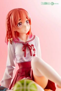 The figure is based on a memorable date visual that shows Sumi gazing upwards with a bashful expression. Delicate details such as her hair and wrinkles in her outfit were perfectly sculpted, and extra care was also taken to recreate even the base that she is sitting on.