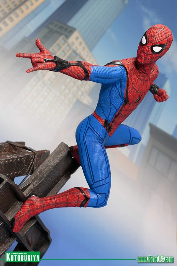 Sculpted with amazing precision by Dave Cortez, the expert behind Kotobukiya’s previously released Star-Lord with Groot ARTFX Statue, Spider-Man is just over 12 ½ inches tall (1/6 scale) perched atop his intricate industrial debris base. Catch this incredible Spider-Man: Homecoming film collectible before he swings off to save the day!