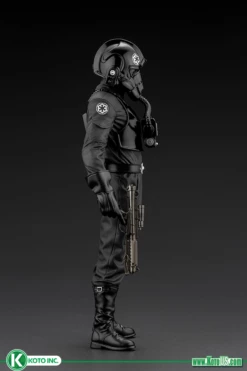 The ARTFX+ TIE Fighter Pilot features the pilot who can be posed at full attention or can be displayed with an E-11 blaster rifle or blaster pistol for optimal display options.