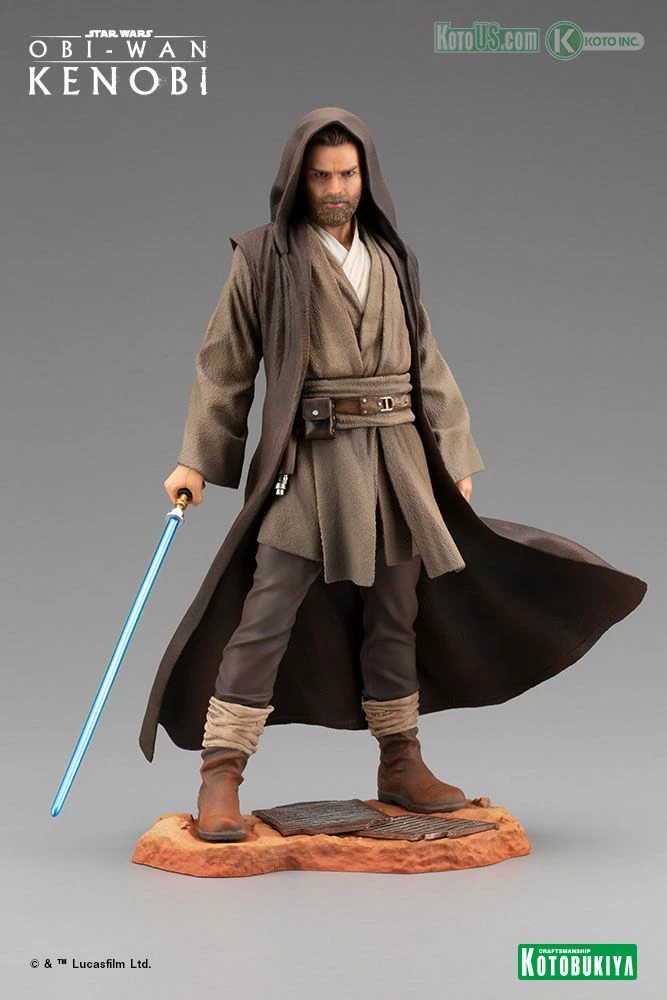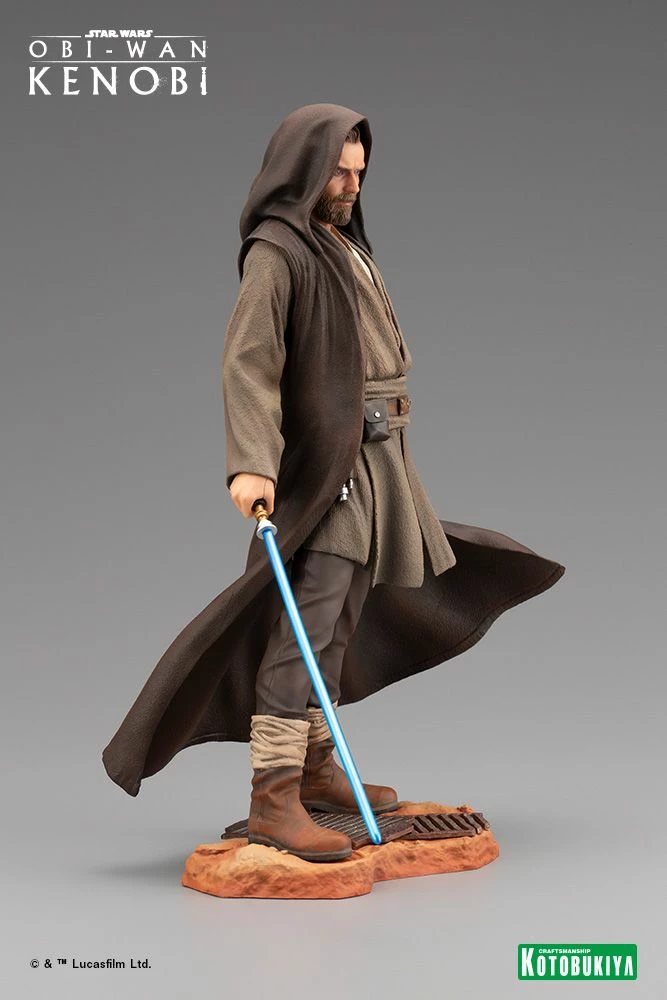 Masterfully rendered in 1/7 scale, the ARTFX Obi-Wan Kenobi perfectly captures the renewed resolve of the Jedi⢠master as he prepares to face his past. With lightsaber ignited and the tails of his robe and tunic flowing with the Force, every exacting detail of this sculpt has been referenced directly from the Lucasfilm production archives.