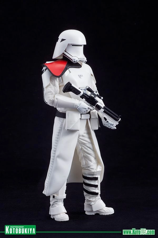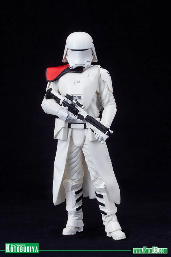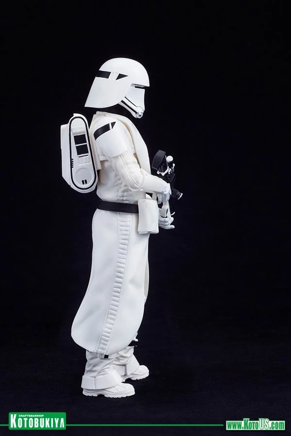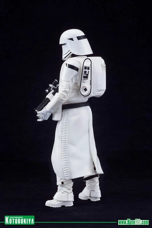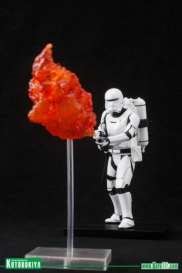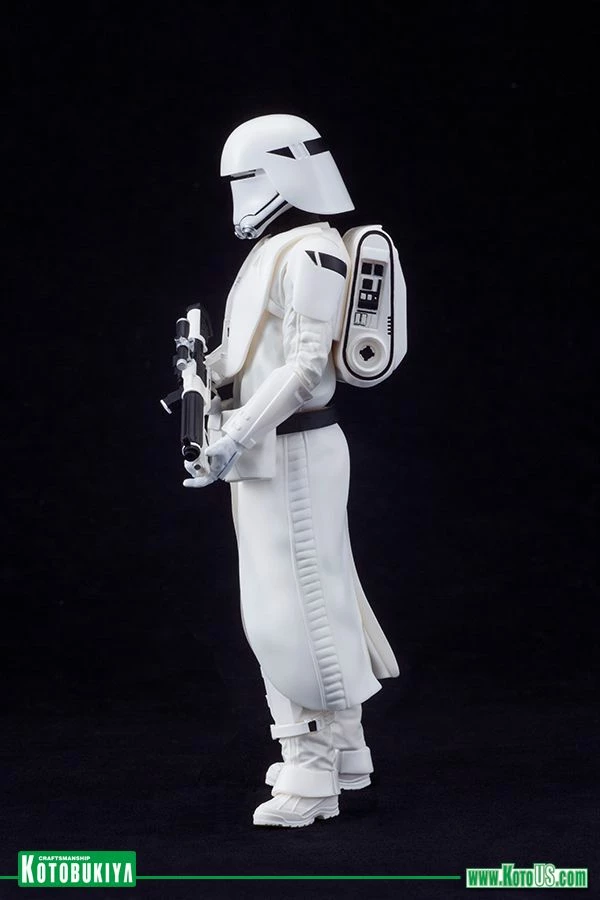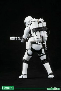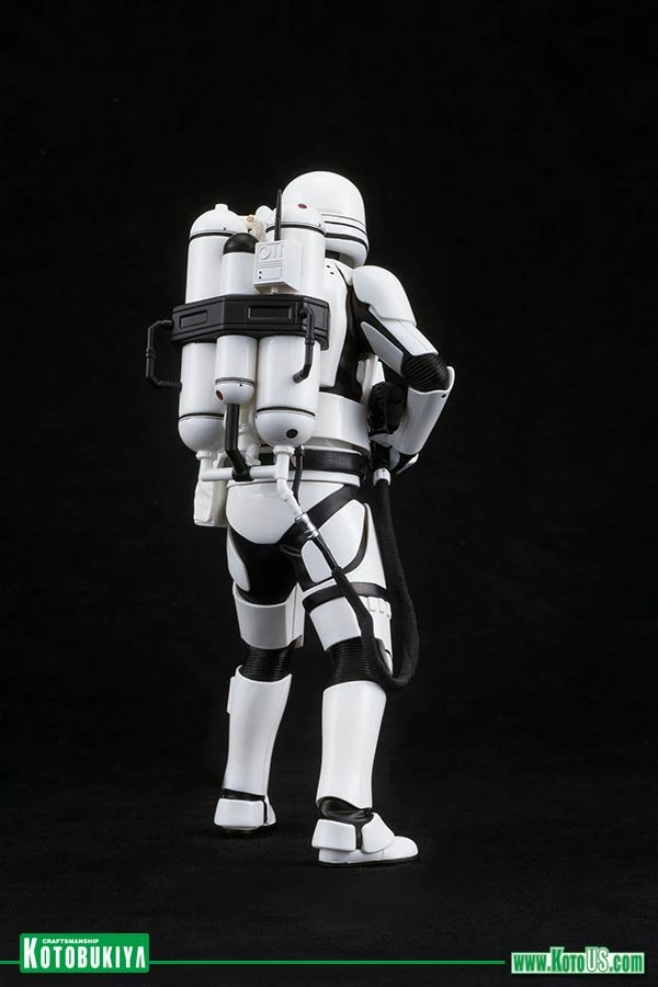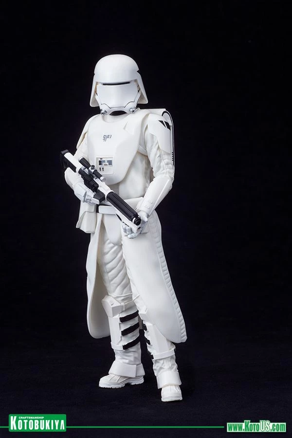 KOTOBUKIYA Japanese import! Star Wars ARTFX+ Statues bring you all of the quality and detailing that you expect from an ARTFX release in a great smaller scale perfect for collecting.The next elite army builder pack brings you more faceless characters from Star Wars Episode VII: The Force Awakens with the FIRST ORDER SNOWTROOPER & FLAMETROOPER TWO PACK! The war machine of the Imperial successor known as the First Order has several specialized stormtrooper variants, and these are two of the coolest and most popular with the fans. First up is the Snowtrooper with reinforced armor featuring thick gloves, bodysuit, kama, environmental backpack unit, and of course a distinctive helmet with glare-reducing eye slit. This Snowtrooper can be posed aiming his blaster or holding it at rest, and he comes with an optional red shoulder pauldron to denote rank. At the cold weather trooper’s side in this two pack is the Flametrooper, a highly trained soldier wielding a fearsome anti-personnel weapon. Like his Snowtrooper ally this First Order warrior wears armor with enhanced environmental features including another helmet designed to mitigate glare (this time from sheets of flame), but trades in the blaster for a powerful D-93 incinerator weapon tied to a backpack loaded with propellant tanks. Kotobukiya even supplies your Flametrooper with a special freestanding flame jet special effect part for a dynamic action display!