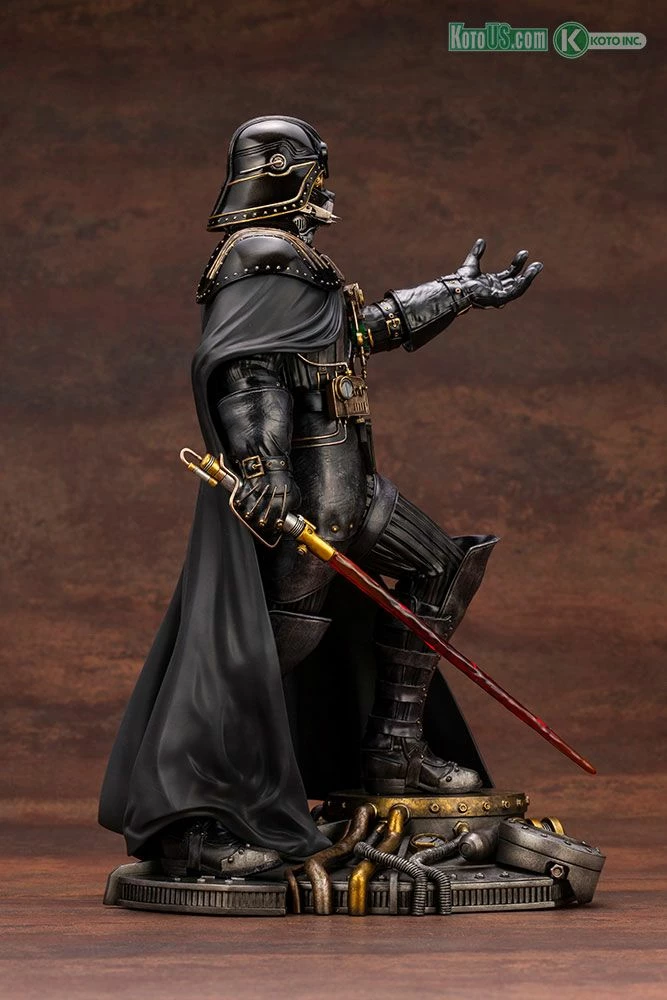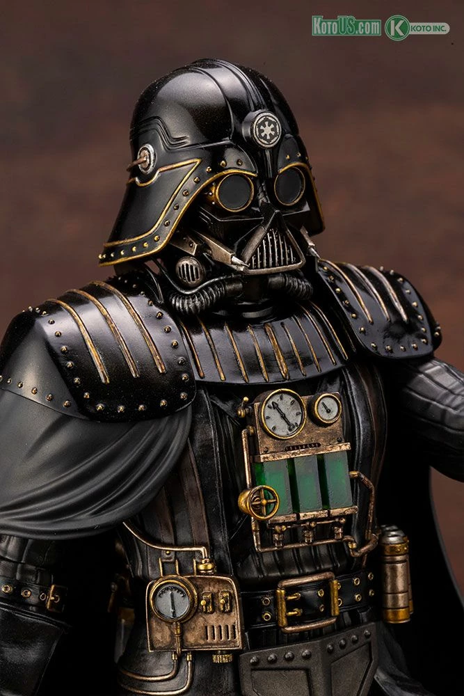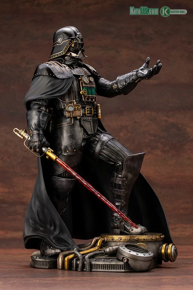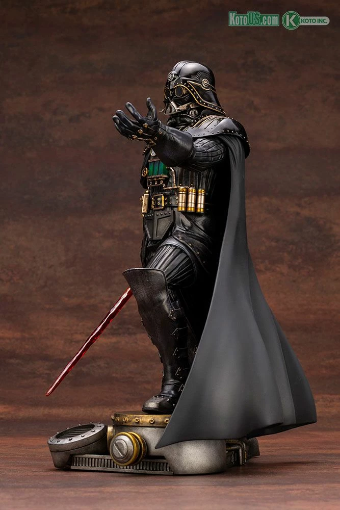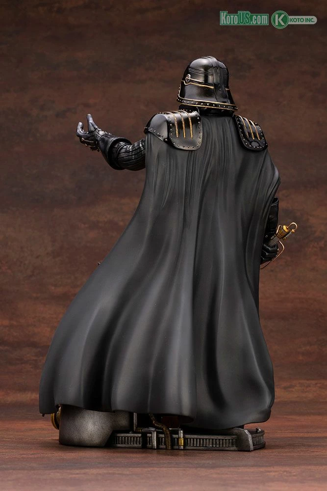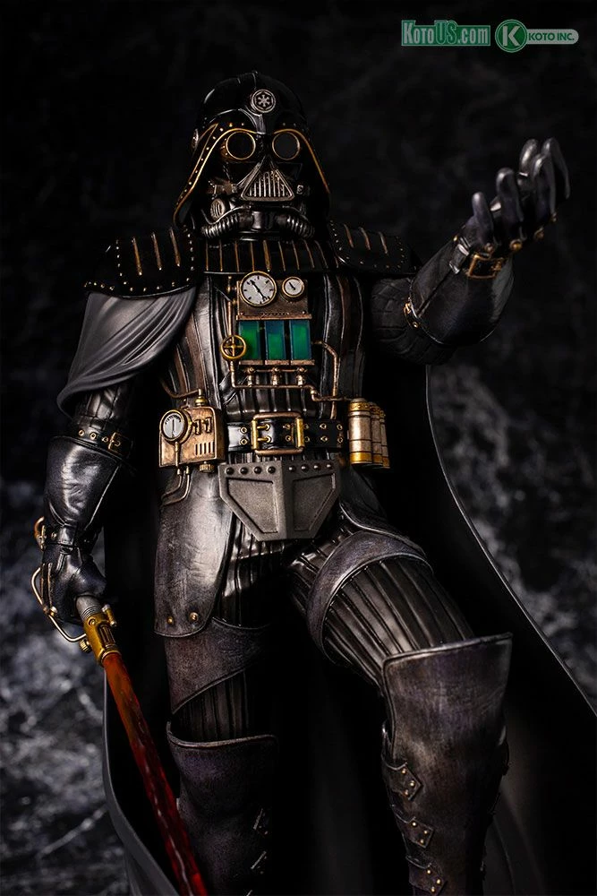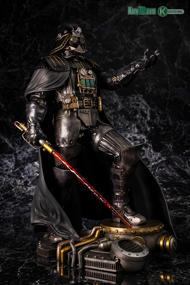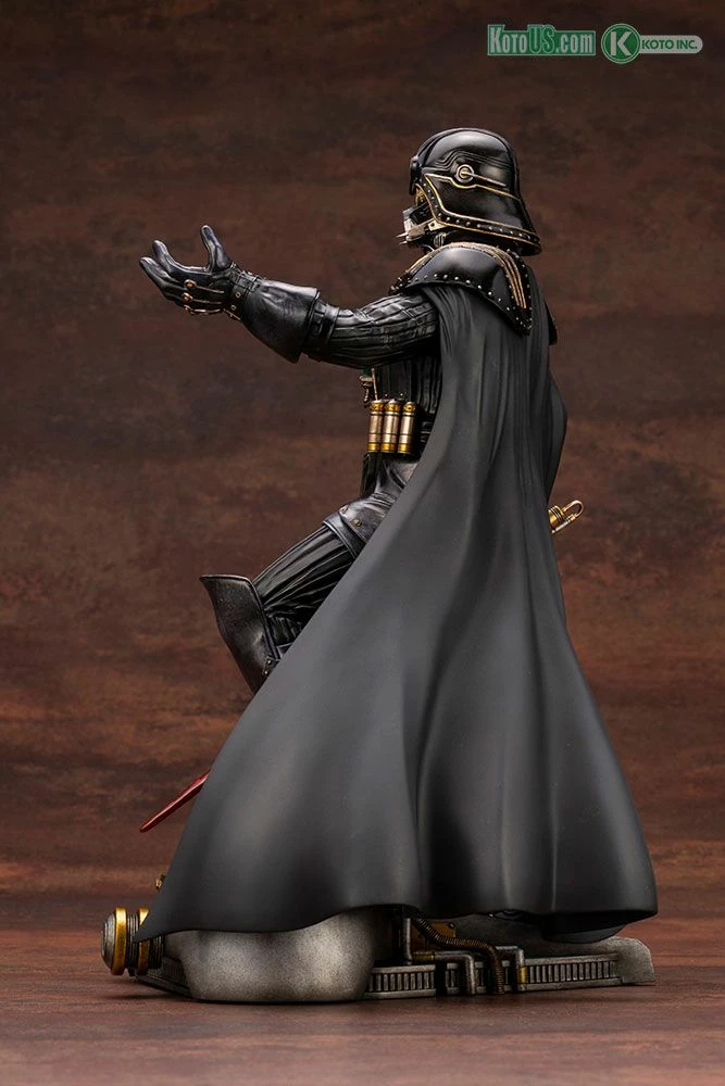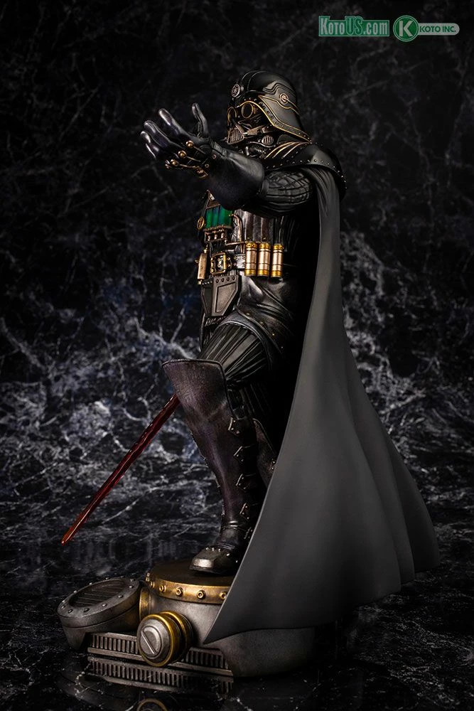 Reimagined in this iconic style, the Dark Lord of the Sith™ appears in a forbidding pose, arm outstretched and incased in a battle-worn suit embellished with metal plating, rivets and various pressure gauges.