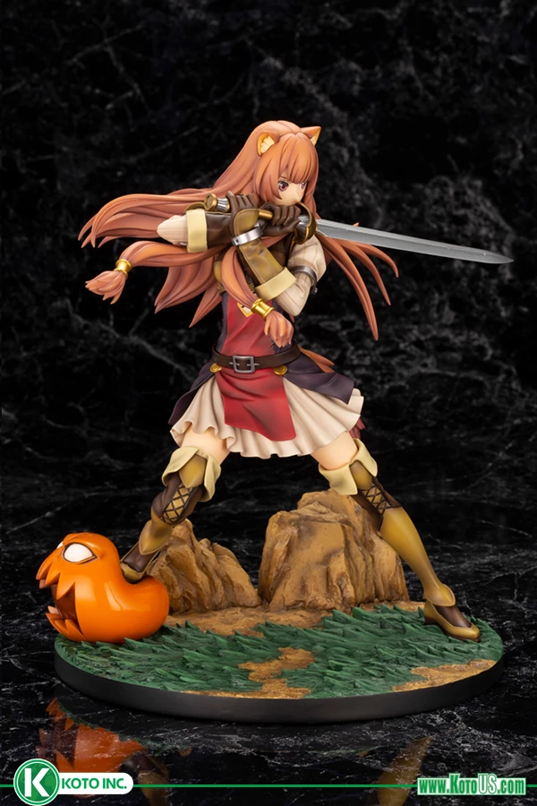 All of the weapons and armor that Raphtalia equips has been perfectly emulated in the sculpting and paint job. From the sword that she infamously carries, to the orange “balloon” that Raphtalia can be seen stepping on, this figure captures the world of the anime from base to figure.