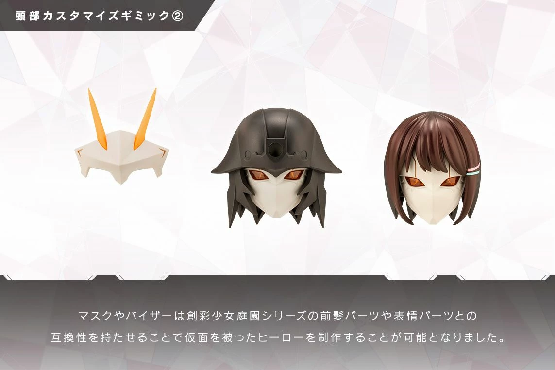 The model can be customized with items from other series by attaching them to the 3mm hard points around the body, and it can also be used with Sousai Shojo Teien face and bang parts allowing for customization options that are unique from previously released series.