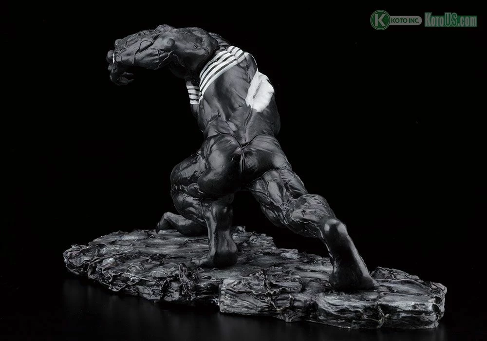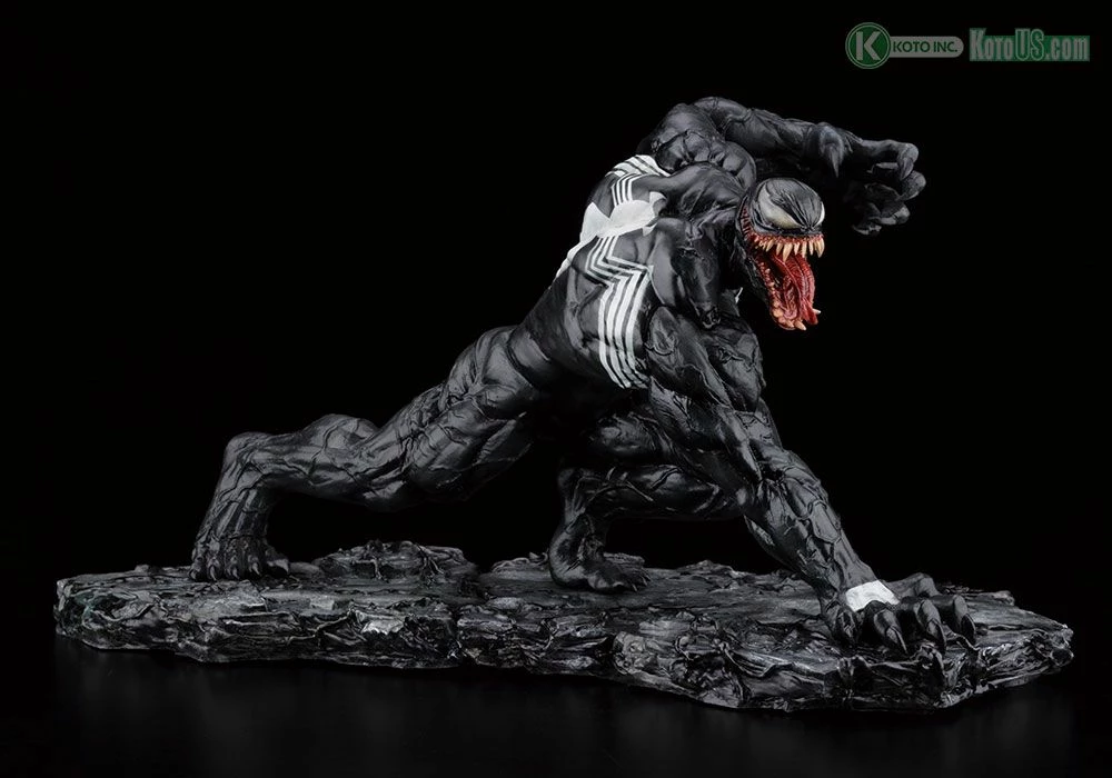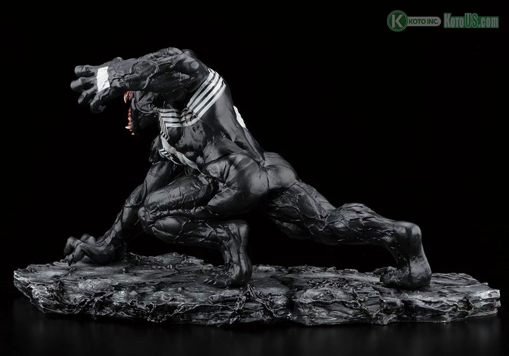 This lifelike statue of the symbiote is shown striking the ground forcefully. The Renewal Edition of the ARTFX+ Venom statue features an updated base and head with an even more malicious expression on his face. The statue’s painting has also been updated!