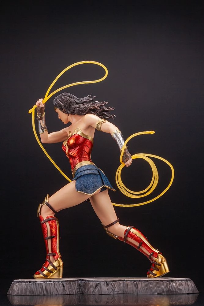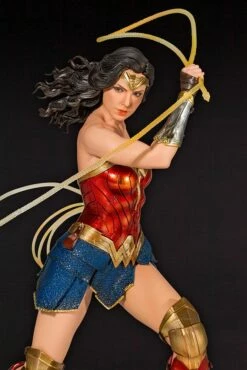 Standing at 1/6 scale with a total height of 250mm, Wonder Woman comes to life standing in a dynamic pose as she grips the Lasso of Truth strongly in her hands.