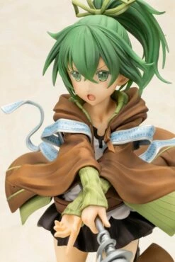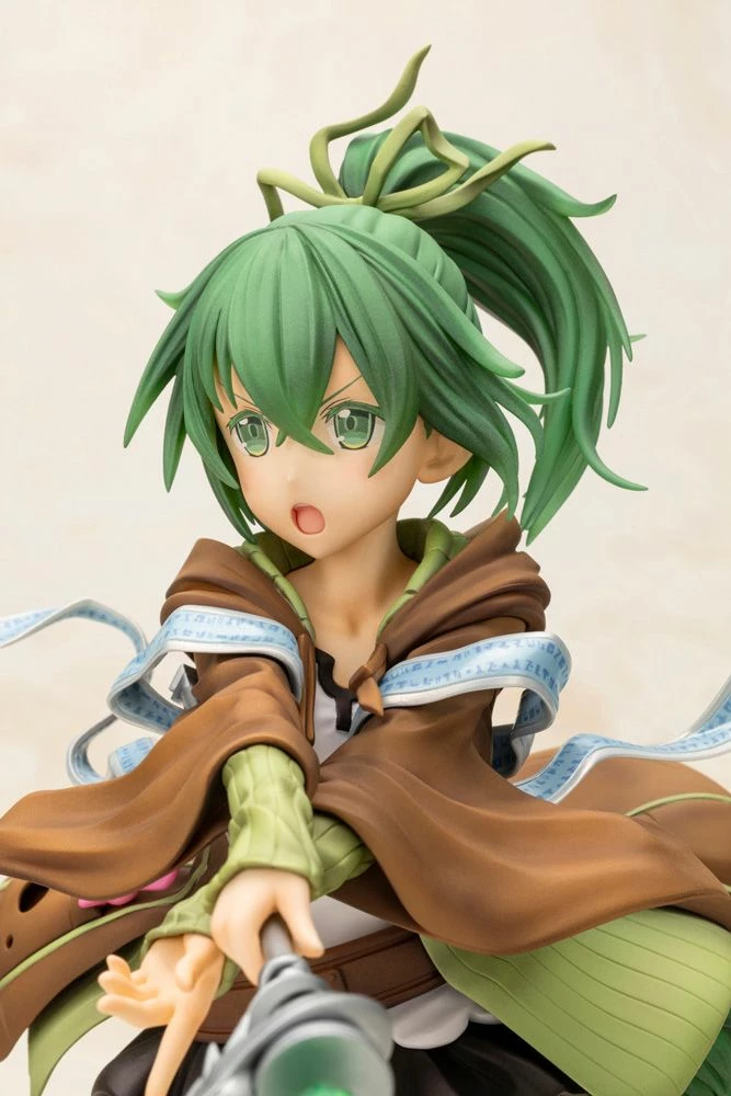 At 1/7 scale, this figure strikes an impressive balance of being easy to display, while also being brought to life in a voluminous size that allows fine details that cannot be seen on the card to be recreated with precision. Pay close attention to the various highlights loaded into this piece, including her ponytail fluttering in the wind, the slight innocence in her appearance, and her uniquely shaped staff.
