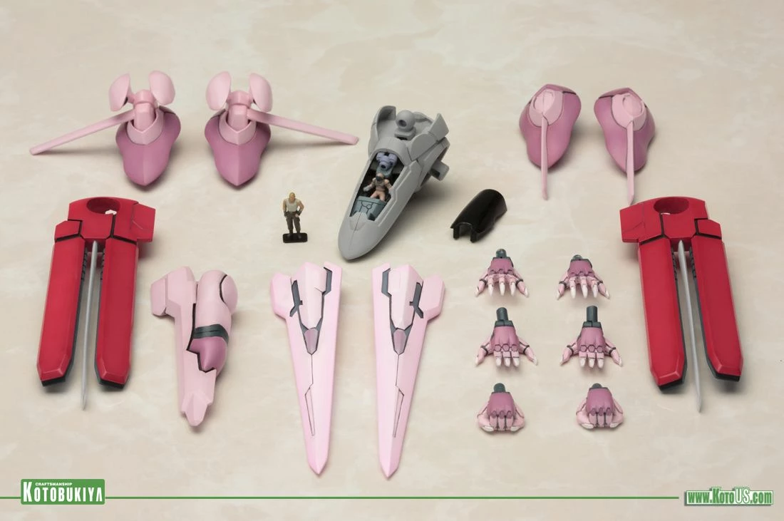A KOTOBUKIYA Japanese import! Zone of Enders is the hit franchise created by Hideo Kojima for Konami consisting of multiple video games, an OVA, and anime series. The next incredible model kit from “Z.O.E.” after the Vic Viper, Jehuty variants, and Anubis is the Class C Orbital Frame DELORES! Piloted by protagonist James Links in Z.O.E. Dolores, i, this unique robot has a sleek look with narrow limbs, pointed legs, extended cockpit, and a distinctive head shape with a cowl and “horns.” The Orbital Frame is fully detailed and consists of 300 individual pieces in pre-colored plastic featuring its bright pink, red, and gray color scheme. Meanwhile, multiple points of articulation, interchangeable hands, and included weapons give you nearly unlimited options for posing and displaying your Delores! Sculpted by Maruya and standing just over 7 inches tall (1/100 scale), this hot pink robot is the perfect addition or start to your Zone of Enders model kit collection from Kotobukiya.