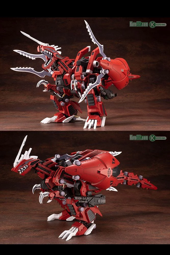 “Geno Breaker, one of our most popular original products in Kotobukiya’s HMM Zoids Lineup, comes revamped in an all-new repackaged version! The model has been better refined and can now be more naturally posed when shooting its Charged Particle Cannon!