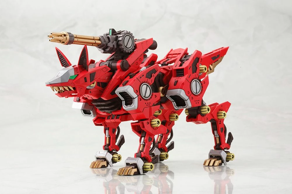 A variant of Shadow Fox outfitted with a Direct Brain Control System, the crimson Zoid, Fire Fox, is back in the HMM series with new bonus parts!